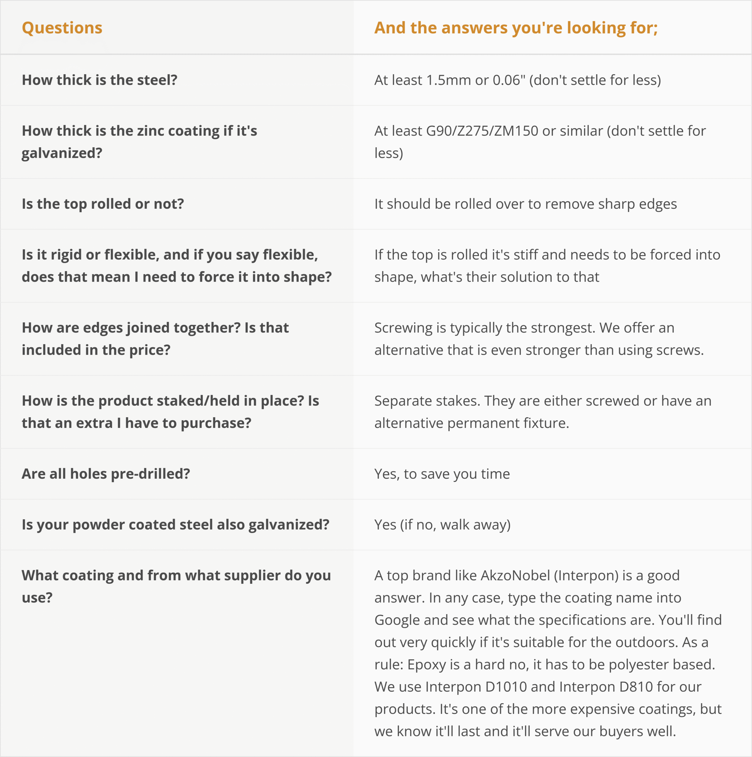 We’ve yet to find metal edging (or any other kind) that provides the same level of customer satisfaction and ease of installation. There are, however, suppliers in the market who are eager to sell their products and may exaggerate their claims to make a sale.